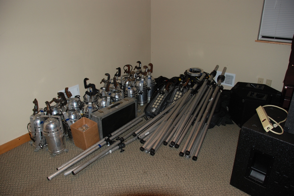 People everywhere! Mostly getting gear stowed, and getting the back-lining done on stage