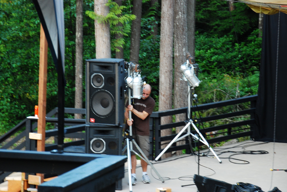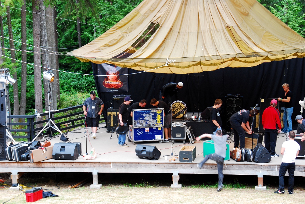 I think this is just a cool shot of how rockin' in the forest the venue actually is. Also, our stage-ninja Paul.