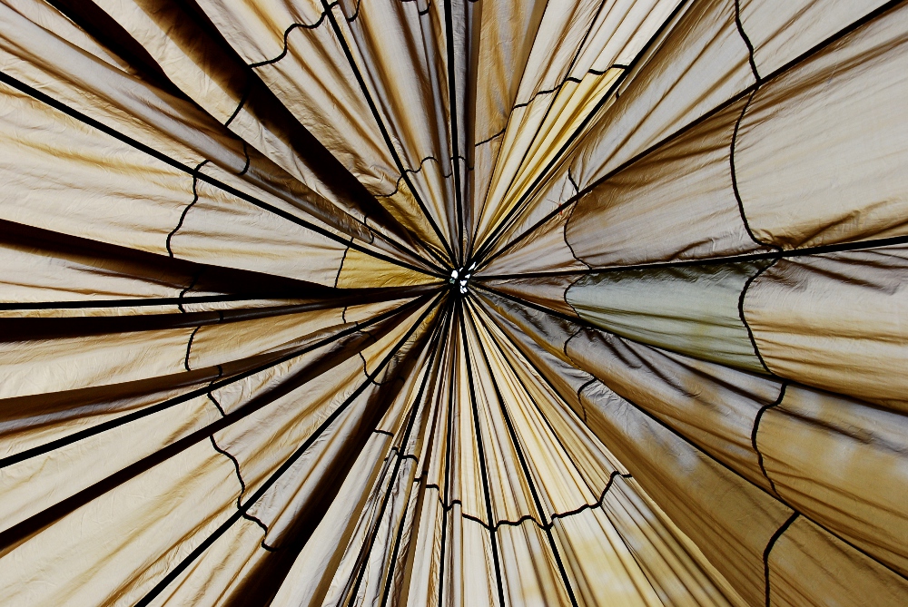 Our sweet parachute canopy. Got to keep the sun off the stage!